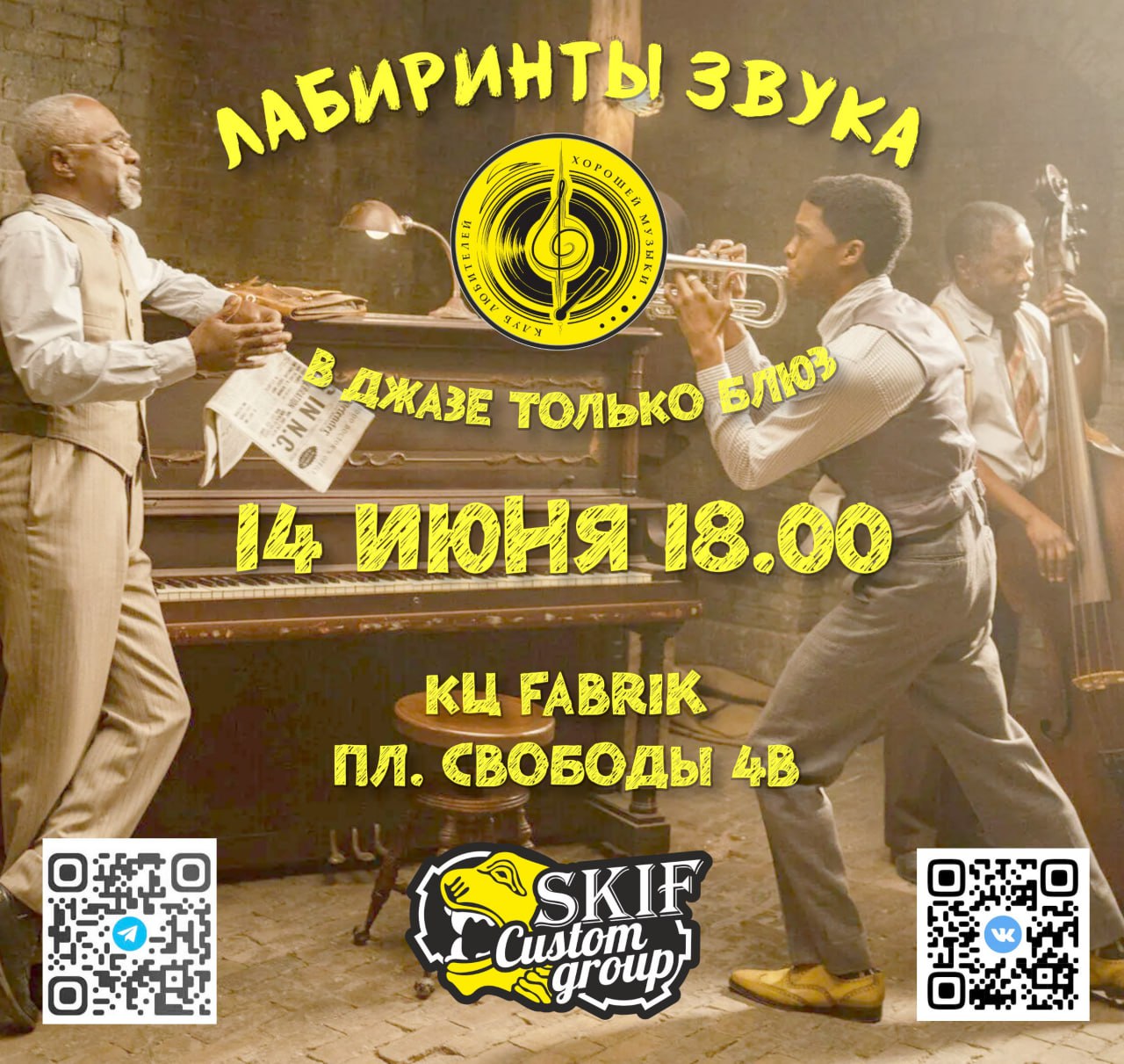 🎷Спешим сообщить, что клуб "Лабиринты звука" (https://t.me/+x-F9zKLBcxFkOTcy) приглашает вас на вечер "В джазе только блюз", который состоится в большом зале КЦ "Fabrik" 14 июня в 18:00